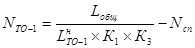 де Lн ТО-1 =3000 км – нормативний пробіг автомобіля до ТЕ-1 .
