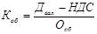 Коефіцієнт оборотності визначається по формулі: