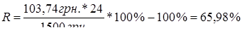 Тобто еквівалентна річна ставка споживчого кредиту “Єврокредит 0%” становитиме 38,9% річних. Розрахунок кредитним калькулятором умов кредиту “Єврокредит мобільний телефон” показує основні умови кредитного договору споживчого кредитування ФКСК “Єврокредит” [87]: 1. Вартість кредитуємого товару – 2000 грн. 2. Сума початкового внеску за товар 500 грн. 3. Сума наданого кредиту – 1500 грн. 4. Термін кредитування – 24 місяців 5. Розрахункова сума щомісячної сплати за кредит – 103,74 грн. Аналіз показує, що фактичний рівень переплати вартості купленого товару для споживача буде дорівнювати :