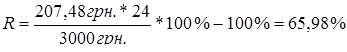Тобто еквівалентна річна ставка споживчого кредиту “Єврокредит мобільний телефон 0% аванс” становитиме 32,99% річних. Розрахунок кредитним калькулятором умов кредиту “Єврокредит без довідки про доходи 0% ” показує основні умови кредитного договору споживчого кредитування ФКСК “Єврокредит” [87]: 1. Вартість кредитуємого товару – 4000 грн. 2. Сума початкового внеску за товар 1000 грн. 3. Сума наданого кредиту – 3000 грн. 4. Термін кредитування – 24 місяців 5. Розрахункова сума щомісячної сплати за кредит – 207,48 грн. Аналіз показує, що фактичний рівень переплати вартості купленого товару для споживача буде дорівнювати :
