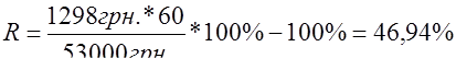 Термін кредитування: від 3 до 24 місяців Процентна ставка — 8% річних Сума кредиту від 250 до 30 000 гривень Комісія за надання та обслуговування кредиту — 1,75% щомісяця Еквівалентна сумарна річна процентна ставка кредитування – 32,22%.З 25 квітня 2006 долі компанії «Простофінанс» та «Рено Україна» представляють на українському ринку нову кредитну програму «Автопросто» з кредитування покупки автомобілів всього модельного рядові «Рено». Програма «АвтоПросто» є однією з найбільш конкурентоспроможних програм на українському ринку, що пропонує низькі кредитні ставки в гривні, мінімальний термін оформлення заявки і демократичні умови кредитування. Залежно від суми кредиту, умови кредитування від «Простофінанс» на період акції (25 квітня — 31 травня) передбачають: кредитна ставка від 9,9% річних у гривні перший мінімальний внесок від 0% термін кредитування — до 5 років термін оформлення кредитові — один час у салоні дилера витрати на страхування авто включені в щомісячні платежі (за бажанням клієнта) погашення кредиту — безкоштовно, у будьякому відділенні Ощадбанку Розрахунок кредитним калькулятором умов кредиту “Автокредит РЕНО” показує основні умови кредитного договору споживчого кредитування ФКСК “ПростоФінанс” [93]: 6. Вартість кредитуємого товару – 50000 грн. 7. Процент попередньої оплати – 0% 8. Початковий страховий платіж КАСКО – 500 грн. 9. Початковий страховий платіж ОСАГО – 500 грн. 10. Витрати на реєстрацію – 2000 грн. 11. Термін кредитування – 60 місяців 12. Розрахункова сума щомісячної сплати за кредит – 1298 грн. Аналіз показує, що фактичний рівень переплати вартості купленого товару для споживача буде дорівнювати :