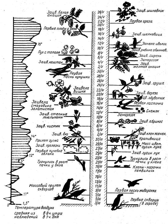 Прекрасна и разнообразна природа нашей Родины. На ее просторах одновременно можно наблюдать не только различные периоды какого-либо сезона, но и разные сезоны года. Весна и лето, осень и зима неизменно дают знать о себе специфическим комплексом сезонных явлений, которые следуют друг за другом в определенной последовательности и через определенные промежутки времени. К сезонным явлениям относятся и весенний прилет птиц, и отлет их осенью, кладка яиц и вывод птенцов, появление и исчезновение насекомых, развертывание листьев у деревьев и кустарников. Весь этот комплекс сезонных явлений изучает фенология ( от греч. fenomen - явление и logos - учение) - наука о явлениях, учитывающая, систематизирующая закономерности порядка и сроков наступления сезонных явлений, т.е. изучающая закономерности сезонного развития природы. Фактическую основу фенологических знаний составляют фенологические наблюдения, содержащие сведения о сроках (календарных датах) наступления конкретных сезонных явлений. Развитие фенологии как отрасли знаний было вызвано запросами практики, а истоки фенологических знаний лежат на заре человеческой культуры. Как только человек обрел способность отмечать в своей памяти явления окружающей его природы, он стал собирателем фенологических наблюдений. Увязывая их с производственным опытом, человек получал представление о лучших сроках проведения полевых работ и учился определять их. Однако прийти к этому он мог лишь путем сопоставления наблюдений за широким кругом сезонных явлений природы. Для современного общества усвоение школьниками суммы разнообразных знаний по различным предметам представляется недостаточным. Те ребята, которые успешно освоили базовый курс школьной программы, научились применять свои знания в знакомой ситуации, но не умеют самостоятельно приобретать знания, умело применять их на практике для решения возникающих проблем, генерировать новые идеи, творчески мыслить, не могут рассчитывать на успех в обществе XXI века. Пришла пора смены приоритетов в образовании - с усвоения готовых знаний в ходе учебных занятий на самостоятельную познавательную деятельность каждого ученика с учетом его способностей и возможностей. Самостоятельная познавательная деятельность проявляется в потребности и умении приобретать новые знания из различных источников, путем обобщения раскрывать сущность новых понятий, овладевать способами познавательной деятельности, совершенствовать их и творчески применять в различных ситуациях для решения любых проблем. Наряду с учебными занятиями важную роль в формировании самостоятельной познавательной деятельности учащихся играет внеурочная работа: занятия на пришкольном участке, постановка опытов и экспериментов, фенологические наблюдения, и экскурсии. Таким образом, будущие педагоги должны сами обладать познавательной самостоятельностью и должны знать, как сформировать данное качество у учащихся. Вопросы организации натуралистической работы с учащимися нелегко решать на теоретических занятиях. Трудность заключается в том, что этот раздел тесно связан с наблюдениями и опытами непосредственно в природе, со сбором натуральных объектов и изготовлением учебно-наглядных пособий. Кроме того, ему необходимы навыки организации проведения опытно-практической рабо