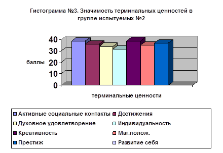 Таблица №2. Уровень значимости терминальных ценностей в разных сферах жизни для испытуемых группы №2