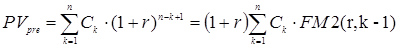 Приведенная стоимость потока пренумерандо в общем виде может быть рассчитана по формуле: