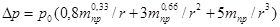 где р0 — атмосферное давление, кПа (допускается принимать равным 101 кПа); r — расстояние от геометрического центра облака, м; mп p — приведенная масса горючей пыли, кг, рассчитанная по формуле: mпр = (Qсг / Q0 )mг,п Z, (1.8) где Qсг — удельная теплота сгорания газа или пара, Дж/кг; Z— коэффициент участия, который допускается принимать равным 0,05; Q0 — константа, равная 4,52 · 106 Дж/кг; mг,п — масса горючих газов и (или) паров, поступивших в результате аварии в окружающее пространство, кг. Импульс волны давления i , Па · с, рассчитывают по формуле: