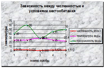Фитопланктон влияет на скорость круговорота веществ в водоеме. В зависимости от своих физиологических особенностей водоросли накапливают те или иные химические элементы с большей или меньшей интенсивностью. Изъятие химических элементов из водной среды может происходить в разный срок, который в значительной степени определяется морфологией водорослей: виды, обладающие мягкой слизистой оболочкой, после отмирания минерализуются непосредственно в толще воды, что обеспечивает быстрый круговорот веществ. Панцирные формы оседают на дно и там медленно и не полностью минерализуются, т.е. возврат химических элементов в воде замедляется, а часть из них выпадает из круговорота веществ (Г.М. Лаврентьева, 1984г). При анализе фитопланктона следует уделять внимание редким видам, так как они являются индикаторными для условий данного водоема (Приложение С). 4. Характеристика биотопов Средней Оби по микроводорослям в 2008гКак известно, на видовое разнообразие фитопланктона и его количественное развитие влияют многие факторы среды обитания, такие как: рН воды, ее температура, наличие в воде растворенных веществ, содержание кислорода и т.д. Материалом для выяснения влияния условий местообитания на развитие водорослей послужили 5 проб, собранных 27.07.08г в течение 80 минут (для меньшего влияния изменяющихся погодных условий со временем) на различных участках реки Обь, расположенных на небольшом отдалении друг от друга. При сравнении видового состава фитопланктона в данных биотопах было обнаружено 65видов, из которых 11 общих для 5 отобранных проб. Все эти виды относились к отделу Chlorophyta. Четыре вида из них являются индикаторами сапробности Crucigenia tetrapedia (Kirhn) W. et. G West, Actinastrum hantschii Lagerh var. gracile Roll, Tetraëdron minutum (A. Br) Hansg f. minutum и Scenedesmus acuminatus (Legerh) Chod. Первые три являются β-мезосапробами, а последний - 0-β-мезосапроб. Менее всего сходства в видовом разнообразии в пробах с 3-го участка в силу малого числа обнаруженных видов. В пробах на этом участке присутствует 2 вида из отдела Chlorophyta, 2 вида из сине-зеленых и 1 вид из евгленовых. Данный участок характеризуется отсутствием течения, илисто-песчаным дном, небольшой глубиной (до 30см). По берегу и на дне произрастают высшая водная растительность, вода прогрелась до 30˚С. В первой пробе, взятой с участка, характеризующегося глинисто-песчаным дном, наличием течения, температурой воды 24,4˚С, прозрачностью в 40см, обнаружены представители отдела Chlorophyta (17 видов), Bacillariophyta (1 вид) и отдела Cyanophyta (3 вида). Во второй пробе, взятой с небольшой отмели на середине реки, где практически отсутствует течение, дно песчано-глинистое, нет растительности, с температурой воды 25˚С, прозрачностью в 60см, обнаружен 1 вид из евгленовых, 2 вида из отдела Cyanophyta и 13 видов зеленых водорослей. Четвертая проба взята с правого берега реки, на котором произрастают древесные породы и осоковые. Проба бралась у берега с каменистым дном. Течение на данном участке слабое, температура воды 25˚С, прозрачность - 45см. В ней обнаружены представители отделов Bacillariophyta (1 вид), Cyanophyta (4 вида) и Chlorophyta (14 видов). Пятая проба взята в месте разделения реки островом на два рукава, на берегу которого произрастают в основном кустарниковые и ивы, осоковые и злаки. Проба отбиралась на участке с песчано-глинистым дном, с температурой воды 22,4˚С и прозрачностью в 50см. В пробах обнаружены были 