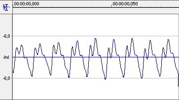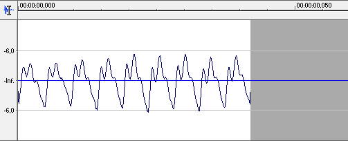 Рисунок 3.5 – Фонема "Г" при гучності 100% Як видно з малюнка 3.8, при гучності 250% фонема "Г" значно спотворюється і перетворюється на шум. Для різних фонем максимальна гучність різна, тому було прийнято рішення обмежити користувача максимальним рівнем 150%. Даних рівень підходить для всіх використовуваних фонем.
