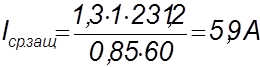 где kнад - коэффициент надёжности; kнад =1,1-1,25; kс - коэффициент схемы, определяемый схемой соединения трансформаторов тока; kс =1; kв - коэффициент возврата; kв =0,8-0,85; kт.т - коэффициент трансформации; kт.т =60.