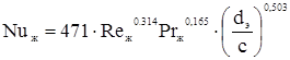 Uж-кинематическая вязкость поглотителя, м²/ч qж= где L-количество поглотителя, кг/ч pж- плотность поглотителя, Периметр сбегания жидкости в одном круге насадки: где L- длинна реек в одном круге
