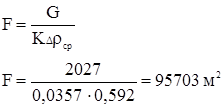 Определение поверхности абсорбции и размеров скрубберов Для скрубберов принимаем деревянную хордовую насадку со следующей характеристикой: толщина рейки…………… а = 0,01 м =10мм; зазоры между ними……… в = 0,02 = 20мм высота рейки……………… с = 120мм Критическая скорость газа определяется уравнением: U=2.32 Вязкость коксового газа при Т = 30ºС Z=0.0127 спз Плотность газа на выходе: p = dэ=2b=2·0,02=0,04м. критическая скорость газа: U=2.32 · Требуемое живое сечение насадки: Sж = Где V-фактический объем газа на выходе из скруббера. V=74452.4 · Отсюда: Sж = Общее сечение насадки скруббера: S общ = и диаметр скруббера: Д= Поверхность абсорбции определяется уравнением: F= Где G-количество поглощенных бензольных углеводородов, кг/ч; ∆pср - средняя движущая сила абсорбции. К- коэффициент абсорбции, кг/(м²·ч·мм рт ст) Движущая сила абсорбции вверху скруббера: