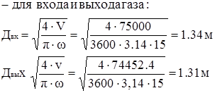 Принимаем диаметр штуцеров для входа и выхода коксового газа 1,500 м Материал штуцеров сталь марок 08 и 10. Где ω = 15 м/с принятая скорость коксового газа в трубопроводе. Для входа и выхода поглотительного масла: