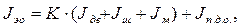 = ƒ(t) , т.е. нагрузочную диаграмму механизма подъёма мостового крана и график изменения во времени динамического момента Алгебраическая сумма статических и динамических моментов дает график изменения суммарного момента на валу электродвигателя, т.е. нагрузочную диаграмму электродвигателя. Статические моменты, приведённые к валу электродвигателя при подъёме номинального груза: где mг - масса груза, т; mo - масса грузозахватного устройства, т; Dб - диаметр барабана, м; ηн - коэффициент полезного действия механизма; i - передаточное отношение редуктора и полиспаста. где ωн – угловая скорость вращения электродвигателя, рад/с; Vп – скорость подъёма, м/с; Статические моменты, приведённые к валу электродвигателя при тормозном спуске номинального груза: Статические моменты, приведённые к валу электродвигателя при подъёме пустого грузозахватного устройства: где ηо – коэффициент полезного действия механизма при данной нагрузке. Определяется по кривым ηо = ƒ(К3 ) , ηо = 0,1 Коэффициент нагрузки определяется по формуле: Статические моменты, приведённые к валу электродвигателя при спуске пустого грузозахватного устройства: Значение Мсо может быть как положительным , так и отрицательным. Для приводов, у которых момент инерции не зависит от угла поворота, приведённой к валу электродвигателя динамический момент находится из уравнения: где Jэ - приведённый к валу электродвигателя эквивалентный момент инерции системы при работе с грузом и без груза, т.е. Jэг и Jэо Определяем приведённый к валу электродвигателя эквивалентный момент инерции системы при работе с грузом: где К = 1,15 - коэффициент, учитывающий приближенно момент инерции редуктора и барабана; Jдв - момент инерции электродвигателя (по каталогу), кгм2 ; Jш - момент инерции тормозного шкива, кгм2 ; Jм - момент инерции муфты и быстроходного вала редуктора, кгм2 ; В ряде случаев Jш и Jм определяют приближенно в долях от момента инерции ротора электродвигателя: Jш = 0,3∙Jдв , (2.18) Jш = 0,3∙1,42 = 0,42 кгм2 (2.18) Jм = 0,15∙Jдв , (2.19) Jм = 0,15∙1,42 = 0,21 кгм2 (2.19) Jп.д.г. – момент инерции поступательно-движущихся элементов инерции, приведенный к валу электродвигателя где Vп – скорость подъёма, м/с; ωн – угловая скорость вращения электродвигателя, рад/с; Определяем приведённый к валу электродвигателя эквивалентный момент инерции системы при работе без груза: где Jп.д.о. – момент инерции поступательно-движущихся элементов системы без учёта веса груза, приведённый к валу электродвигателя;