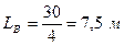 Санитарными нормами устанавливаются расстояния между светильниками и стеной lB .Если рабочие места расположены у стен, то lB =(0,2÷0,3)*LB . Если у стен имеются проходы, следовательно, lB =(0,4÷0,5)*LB . В нашем случае у стен имеются проходы, следовательно, принимаем значение 0,5. Расстояние между светильниками в ряду можно найти по уравнению: 2∙0,5∙LB ∙(n2 – 1)∙LB = B (2.85) где LB – расстояние между светильниками в ряду, м; В – ширина участка цеха, м; 2∙0,5∙ LB ∙(4 – 1)∙ LB = 30 (2.85)