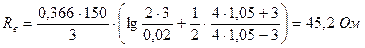 где lг – длина горизонтального заземлителя, м; ρрасч.г – расчетное удельное сопротивление горизонтальных заземлителей, Ом∙м; t` – расстояние от середины стержня до поверхности грунта, м;
