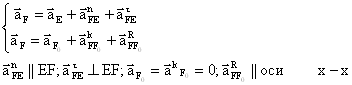 Переходим к построению плана аналогов скоростей для групп Ассура (4;5). Известна скорость точки E. Найдем скорость точки F, рассматривая ее движение по отношению к точке E. Запишем векторное уравнение: