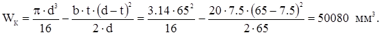 где W – для сечения со шпоночным пазом, момент сопротивления: