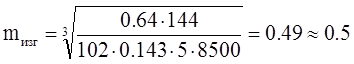 где mвык – модуль на выкрашивание; U - передаточное число; [Мк ]р = Мк ·Ккнц ·Кд ·Кр – расчетный момент колеса, вычесленный с учётом влияния условий эксплуатации; Мкр - крутящий момент на колесе; Ккнц - коэффициент концентрации нагрузки (Ккнц = 1.4 при несимметричном расположении); Кд - коэффициент динамической нагрузки, зависящий от погрешностей изготовления колеса и скорости вращения (Кд = 1.0÷1.1); Кр - коэффициент режима работы, зависящий от наличия ударов, вибрации (Кр = 1.0÷1.1); КЕ - коэффициент, учитывающий разнородность материалов колеса и шестерни, определяется по формуле: