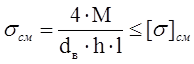где h - толщина прикрепляемой детали; [σ]см - допускаемое напряжение смятия ([σ]см = 173 Н/мм2 ). Из формул (30) , получаем