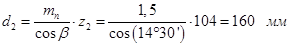 Сравниваем полученное значение напряжения с допускаемым напряжением при расчёте на изгиб зубьев колеса: Определим диаметры делительных окружностей шестерни и колеса соответственно.