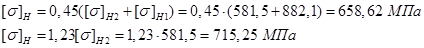 Так как HBср1-HBср2=505-285=220>70 и HBср2=285<350, то расчетное допускаемое напряжение: