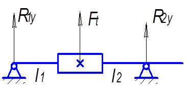 Линия симметрии шестерни совпадает с линией симметрии относительно которой установлен подшипник, а значит суммарную реакцию опоры на один подшипник можно найти как: