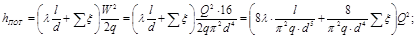 где Общие потери напора в трубопроводе, включая потери на трение и местные потери, находят суммированием: