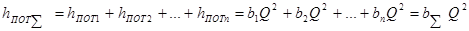 Из этого выражения видно, что для данного трубопровода зависимость потерь от расхода графически выражается параболой. При последовательном соединении трубопроводов разного диаметра общие потери напора соединения