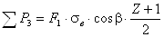 Для определения равнодействующей в опасном сечении I составим уравнение проекций сил на направление силы Рв