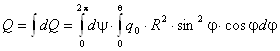 Для определения горизонтальной равнодействующей сил давления Q вырежем в точке 1 (см. рис.12) элементарную площадку шарового пояса, отстоящую от оси пояса на расстоянии ρ (pиc.12, в), со сторонами Rdφ и ρdψ. Элементарная площадь равна: