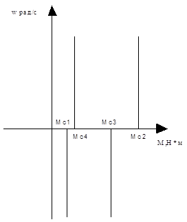 Рисунок 1.3 – Нагрузочная диаграмма Время переходного процесса меньше, чем 10 % от времени установившегося движения. Поэтому при составлении нагрузочной диаграммы не надо дополнительно учитывать динамический момент. Зная моменты нагрузки, можно построить механические характеристики рабочей машины. Характеристики представлены на рисунке 1.4.