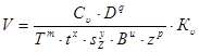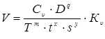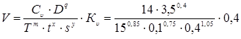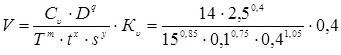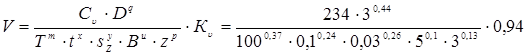 где, m = 0,37 – показатель степени; х = 0,24 – показатель степени; y = 0,26 – показатель степени; u = 0,1 - показатель степени; p = 0,13 - показатель степени; q = 0,44 - показатель степени. Т = 100 мин – период стойкости инструмента;
