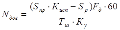 где Дк – число календарных дней в году, Дк=365; Пр – число праздничных дней в году, Пр=11; Вс – число воскресных дней в году, Вс=52; Сб – число субботних дней в году, Сб=52; Тсм – длительность рабочей смены, Тсм=8ч; Дпр – количество предпраздничных дней, Дпр=9; Тпр – время, на которое сокращается предпраздничный день, Тпр=1ч; С – количество смен в сутки, С=2. Таким образом, Fн=((365-11-52-26)·8 - 9∙1)∙2=4398 ч Fд=4398∙ (1-0,07)=4090 ч. Годовая программа запуска равна:
