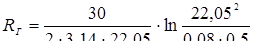 где, l – длина горизонтального электрода, l = 22,05м ; d – диаметр стержня, в = 0,08 м; t0 – расстояние от поверхности грунта до стержня, t0 = 0,5 м; То есть Определим сопротивление растеканию тока искусственных заземлителей: