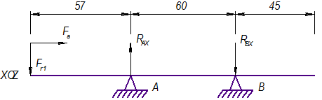 Рисунок 5 – Силы в плоскости ХОZ. Вычисляем реакции при