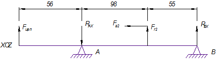 Рисунок 2 – Силы в плоскости ХОZ. Вычисляем реакции при