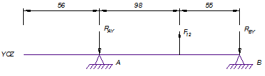 Рисунок 6 – Силы в плоскости YОZ. Вычисляем реакции при