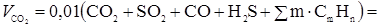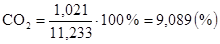 Процентный состав продуктов сгорания находим как отношение объёма компонента ко всему объёму продуктов сгорания (см.[1]):