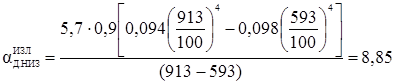 Средний за второй интервал коэффициент теплоотдачи излучением (по формуле 35):