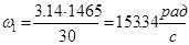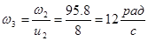 2. Найдем угловую скорость и число оборотов в мин барабана