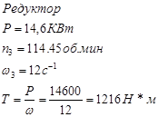 1. По номограмме в зависимости от частоты вращения меньшего шкива n1 (в нашем случае n 1 = nдв =1465 об/мин) и передаваемой мощности Р= Р дв =14,6 КВт принимаем сечение клинового ремня Б. Вращающий момент:
