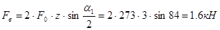 Р0 =6,6 из таблицы 7.8, принимаем число ремней равным 3. 10. Натяжение ветви клинового ремня находим по формуле: