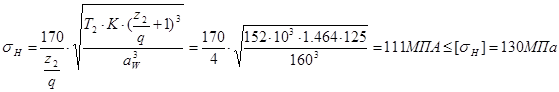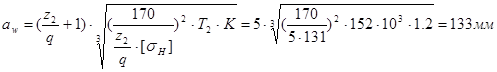 Принимаем предварительно коэффициент диаметра червяка равным 8. Определяем межосевое расстояние: