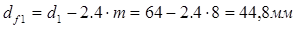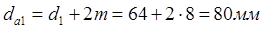 Основные размеры червяка: Делительный диаметр червяка d1 =q*m = 8*8 = 64 мм; Диаметр вершин витков червяка