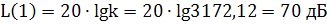 З крапки на осі L проводимо пряму під кутом -20 дБ/дк (перша ділянка ЛАЧХ) до перетину з вертикаллю в точці