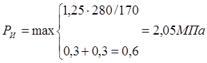 где sт - предел текучести металла, МПа; [s] -допускаемое рабочее напряжение, МПа. Предел текучести sт , МПа, определили согласно [17,С.282]: sт = 280 МПа Допускаемое рабочее напряжение составит: [s]= 1,0 × 170 = 170 МПа Давление изгибающее составило: