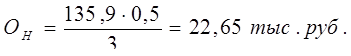 Итого, основной фонд зарплаты Зосн = 135,9 + 67,95 + 17,332 + 22,65 + 9,06 + 20,38 = 273,27 тыс. руб. Оплату отпуска Оотп , тыс. руб., оплату за выполнение общественных и государственных обязанностей Ооб , тыс. руб., ученического отпуска, Оуч, тыс. руб., определяли согласно [3,С.99] по формулам Оотп = (Зосн /Тэф ) · nотп , (7.10) Ооб = (Зосн /Тэф ) · nоб (7.11) Оуч = (Зосн /Тэф ) · nуч (7.12) где nотл , nоб , nуч – соответственно продолжительность отпуска, выполнение общественных и государственных обязанностей, ученического отпуска, дни. Оотп = (273,27/172) · 38 = 60,37 тыс. руб., Ооб = (273,27/172) · 1 = 1,59 тыс. руб. Оуч = (273,27/172) · 3 = 4,77 тыс. руб. Итого, дополнительный фонд зарплаты Здоп = 60,37 + 1,59 + 4,77 = 66,73 тыс. руб. Общий фонд зарплаты Зобщ , тыс. руб., определяли согласно [3,С.99] по формуле Зобщ = Зосн + Здоп , (7.13) где Зосн и Здоп – соответственно основной и дополнительный фонд зарплаты, тыс. руб. Зобщ = 273,27 + 66,73 = 340 тыс. руб. Доплату за районные условия Зр.к , тыс. руб., определяли по формуле Зр.к = 0,15 × Зобщ , (7.14) где 0,15 – 15% районный коэффициент по Уралу. Зр.к = 0,15 × 340 = 51 тыс. руб. Годовой фонд зарплаты Зг , тыс. руб., определяли согласно [3,С.100] по формуле Зг = Зобщ + Зрк (7.15) Зг = 340 + 51 = 391 тыс. руб. 7.3.2 Расчет годового фонда заработной платы для ИТРРасчет произвели для начальника отделения. Месячный оклад Ом , тыс. руб., приняли Ом = 3,728 тыс. руб. Оплату по тарифу От , тыс. руб., определяли согласно [3,С.100] по формуле От = Ом × Чсп × 11, (7.16) где Чсп – списочная численность, чел. От = 3,728 × 1 × 11 = 41 тыс. руб. Премию за 100% выполнение установленного задания Оп , тыс. руб., определяли согласно [3,С.100] по формуле