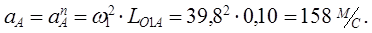 На плане скоростей этот вектор изображается отрезком πа = 158 мм, направленным от А к О1 . Тогда масштаб плана ускорений