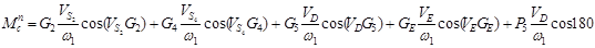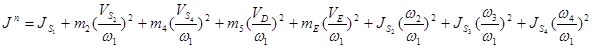 Тут позначено: Jn – момент інерції наведеної маси щодо осі обертання; Mn – наведений момент всіх зовнішніх сил Mn = Mn с - Mn д ; Mn д – наведений момент рушійних сил, Нм; Mn с – наведений момент сил опору, Нм. Маси ланок: m5 =450кг, mE =600 кг. Моменти інерції ланок: Сила ваги G=mg: G2 =200 Н, G4 =200 Н, G5 =4500 H, GE =6000 H. Сила опору: при підйомі: Р5 =6000 Н; при опусканні: P5 =2000 Н. Приведення сил: