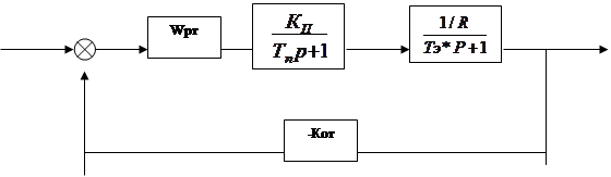Рис 3 Передаточная функция гибкой обратной связи Wгс = - То*Р Для нормальной работы системы необходимо привести сигнал гибкой ОС к сигналу задания на скорость. Для этого в цепь гибкой ОС необходимо ввести коэффициент ОС по скорости первой массы. Wгс = - То*Р*Кос Для определения То надо задаться величиной о и подставить её в формулу: