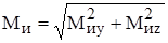 Используя принцип независимости действия сил, строим эпюры изгибающих моментов от вертикальных (рис. 1, в) и горизонтальных сил (рис. 1, г), а также эпюру крутящих моментов (рис. 1, д). Сравнивая построенные эпюры, видим, что наиболее опасным является сечение, проходящее через точку С . В этом поперечном сечении помимо крутящего действует и изгибающий момент, величина которого определяется как